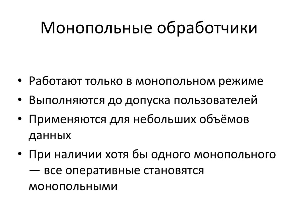 Монопольные обработчики• Работают только в монопольном режиме