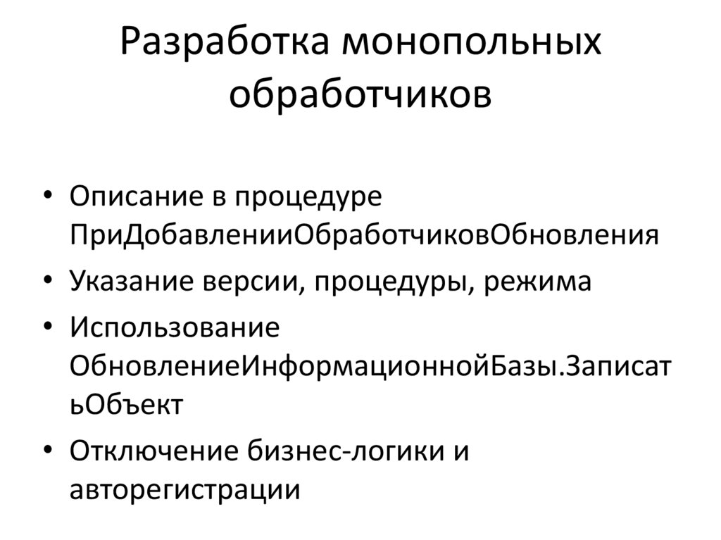 Разработка монопольныхобработчиков