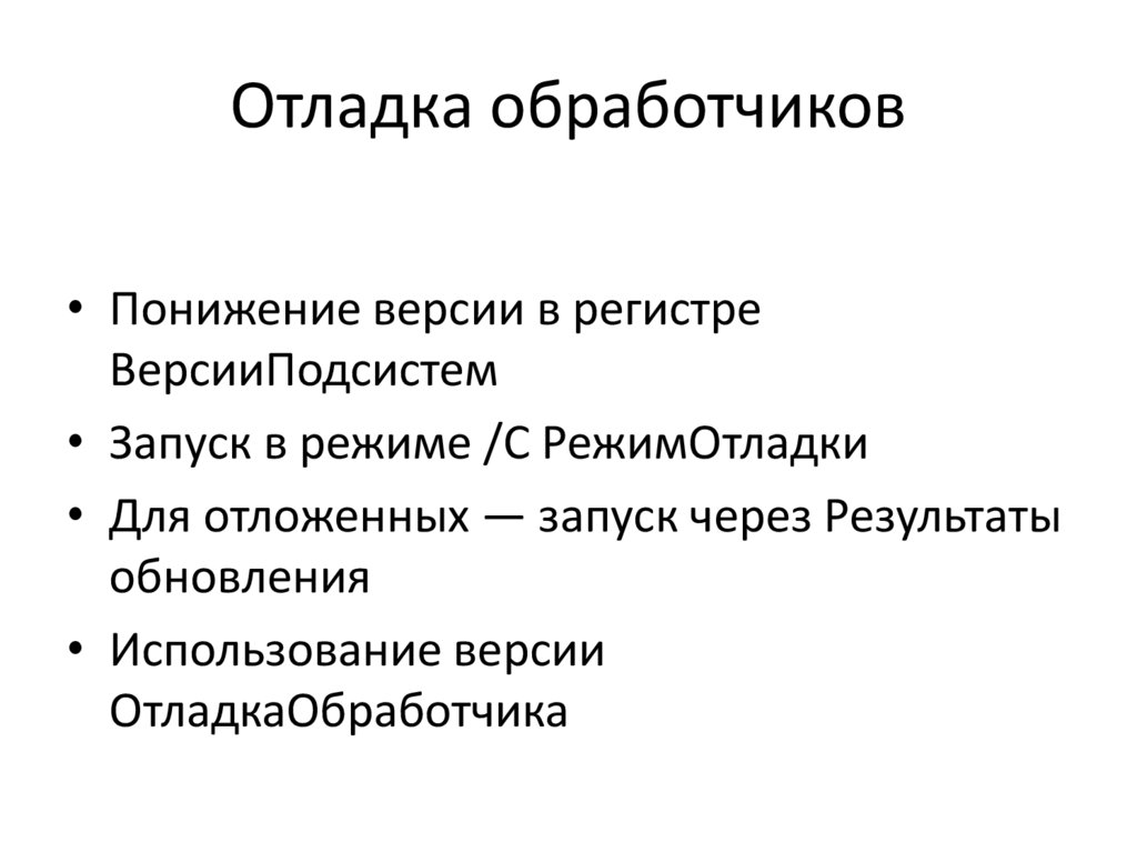 Отладка обработчиков• Понижение версии в регистре