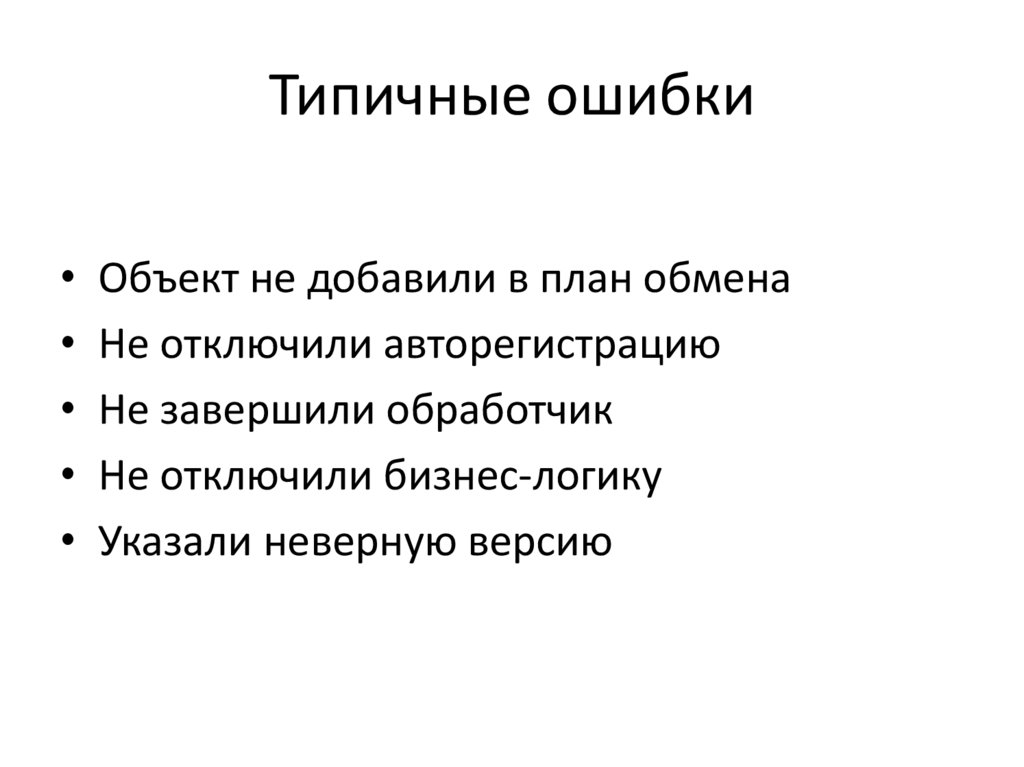 Типичные ошибки• Объект не добавили в план обмена