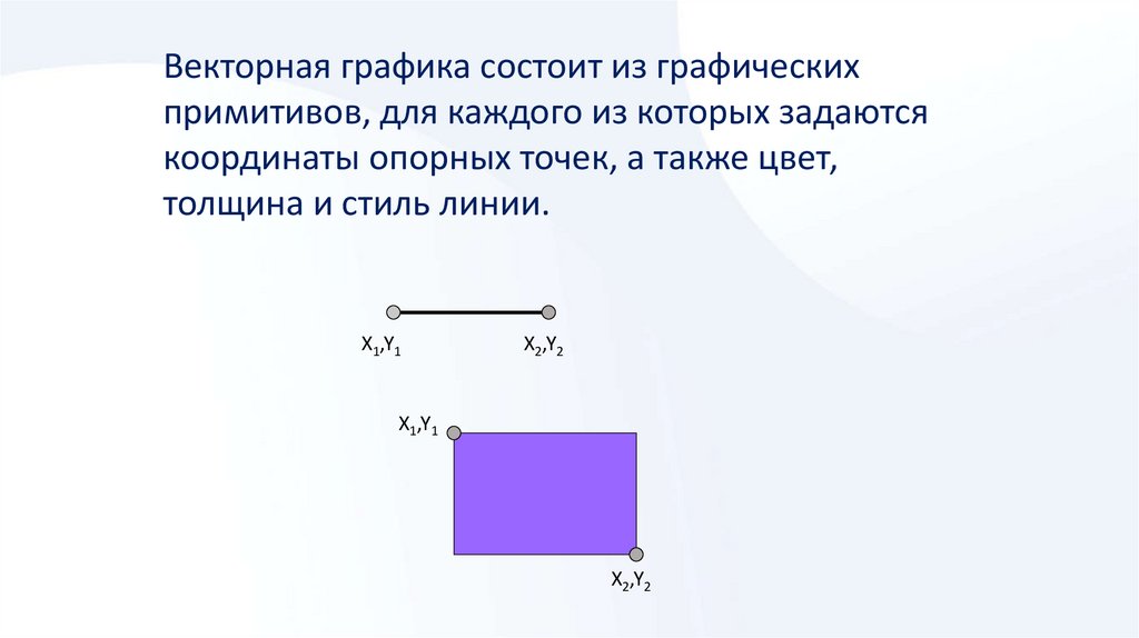 Векторная графика состоит из графическихпримитивов, для каждого из которых задаются