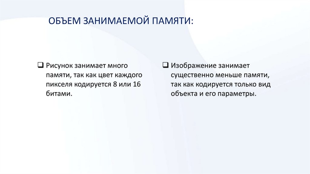 ОБЪЕМ ЗАНИМАЕМОЙ ПАМЯТИ:Рисунок занимает много
