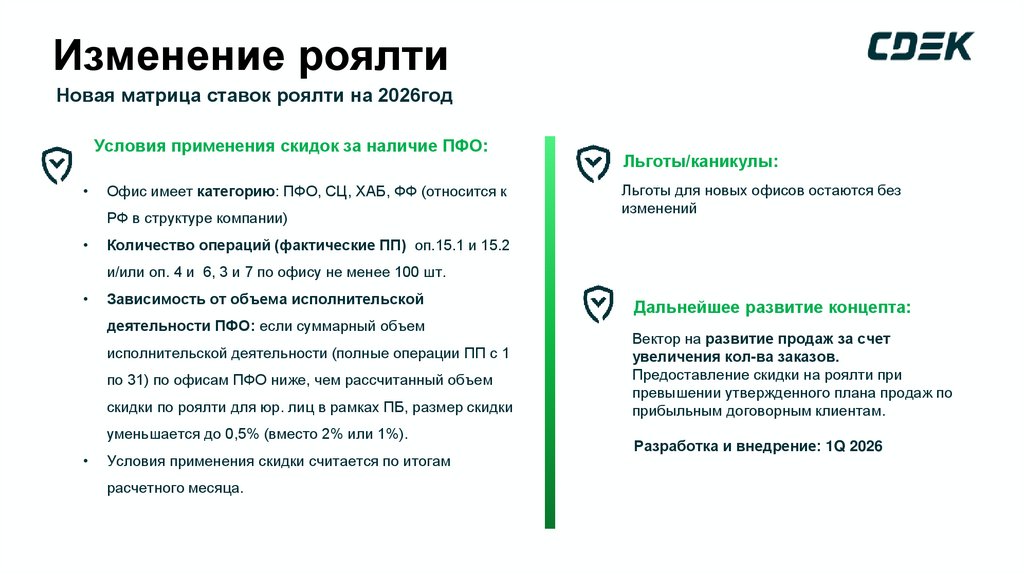 Новая матрица ставок роялти на 2026годУсловия применения скидок за наличие ПФО: