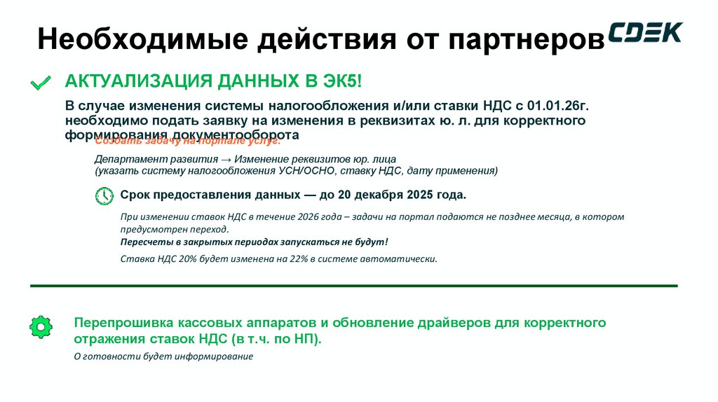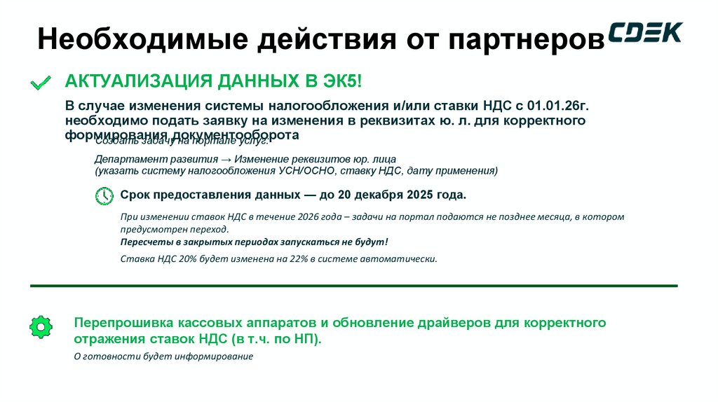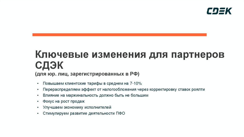 16. Ключевые изменения для партнеров СДЭК (для юр. лиц, зарегистрированных в РФ)