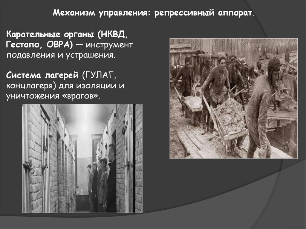 Механизм управления: репрессивный аппарат.Карательные органы (НКВД,