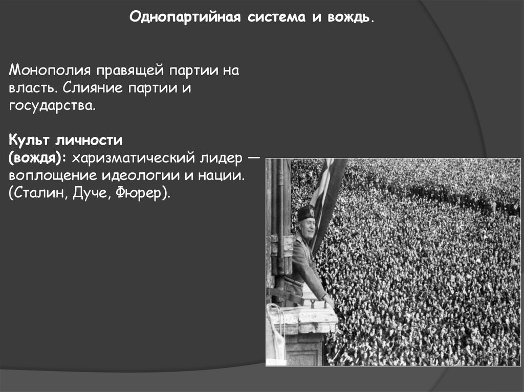 Однопартийная система и вождь.Монополия правящей партии на