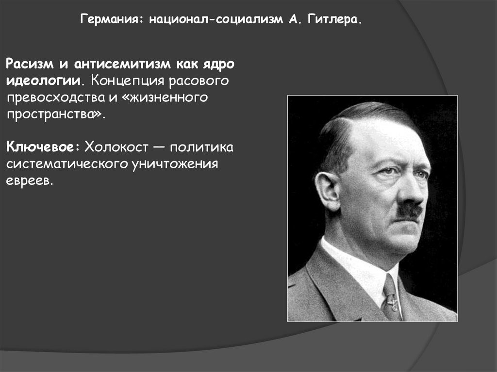 Германия: национал-социализм А. Гитлера.Расизм и антисемитизм как ядро
