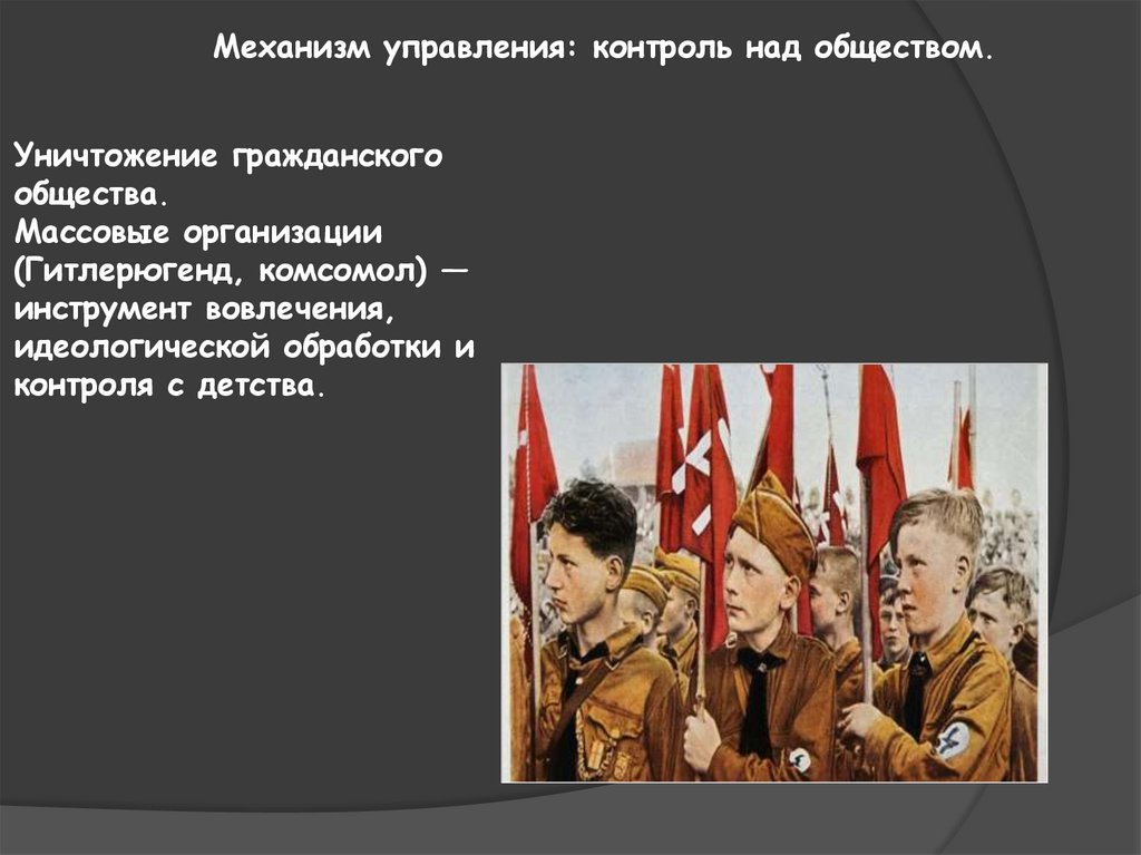 Механизм управления: контроль над обществом.Уничтожение гражданского