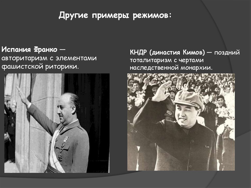 Другие примеры режимов:Испания Франко —