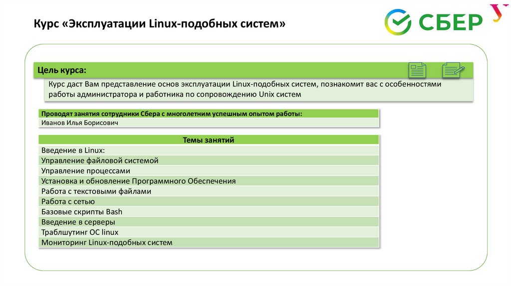 Курс даст Вам представление основ эксплуатации Linux-подобных систем, познакомит вас с особенностями