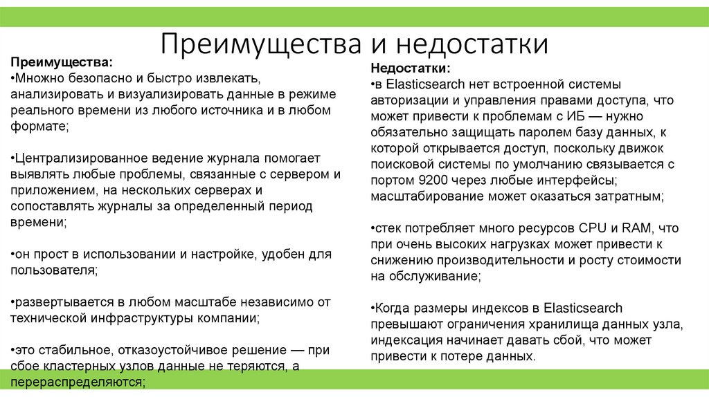 Elasticsearch используетсядля хранения, анализа,