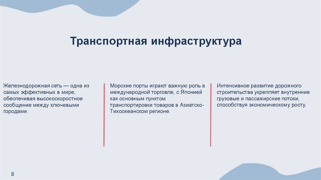 Транспортная инфраструктураЖелезнодорожная сеть — одна из