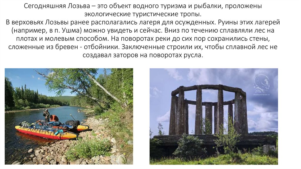 7. Сегодняшняя Лозьва – это объект водного туризма и рыбалки, проложены экологические туристические тропы. В верховьях Лозьвы
