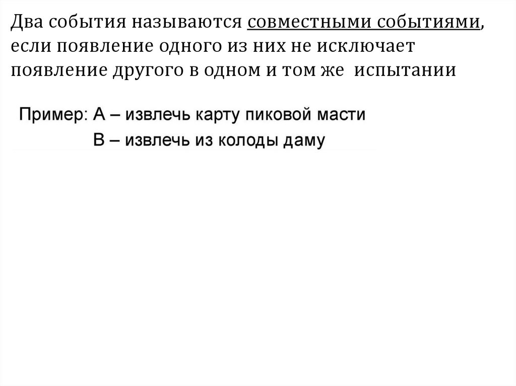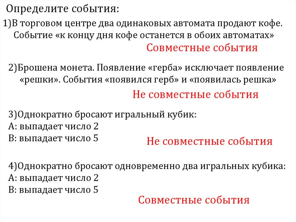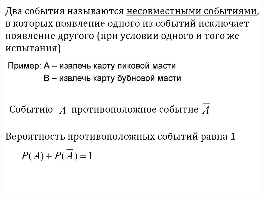 Два события называются несовместными событиями,в которых появление одного из событий исключает