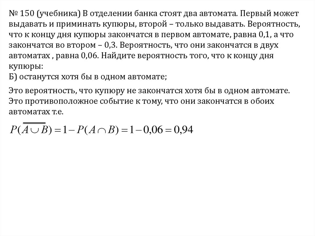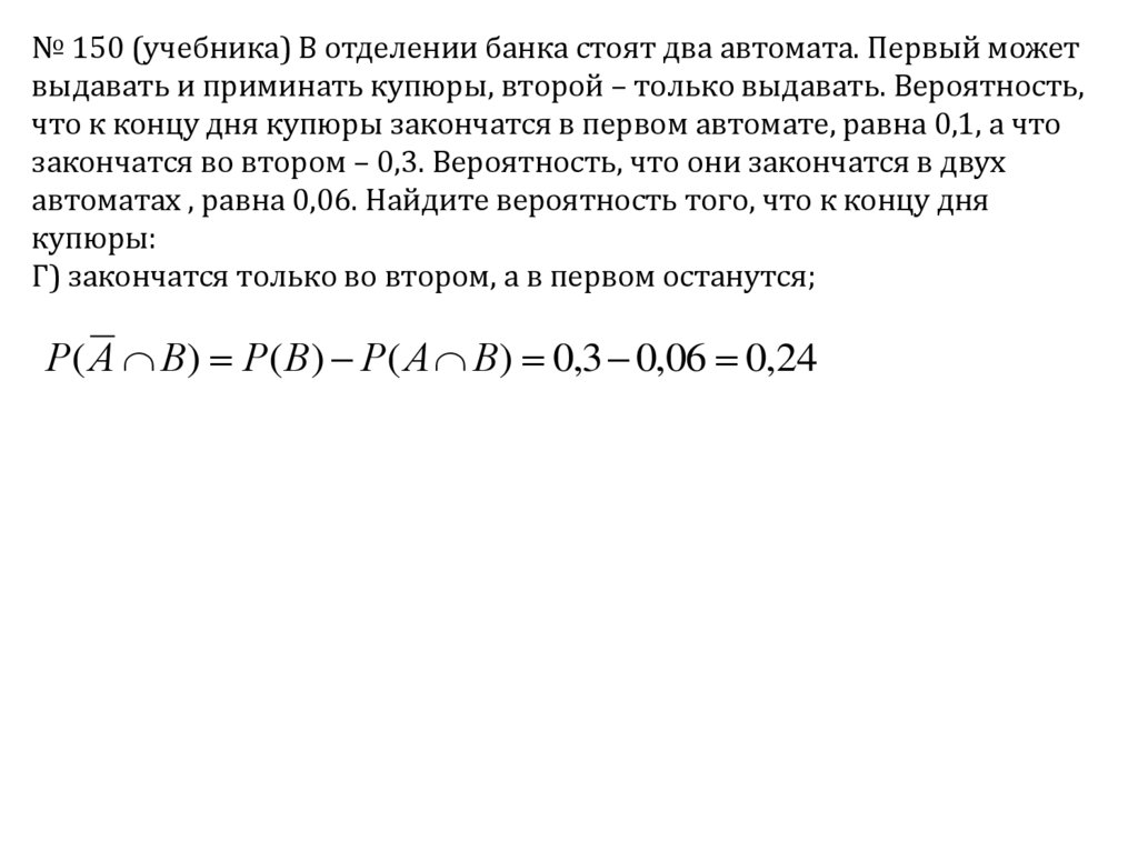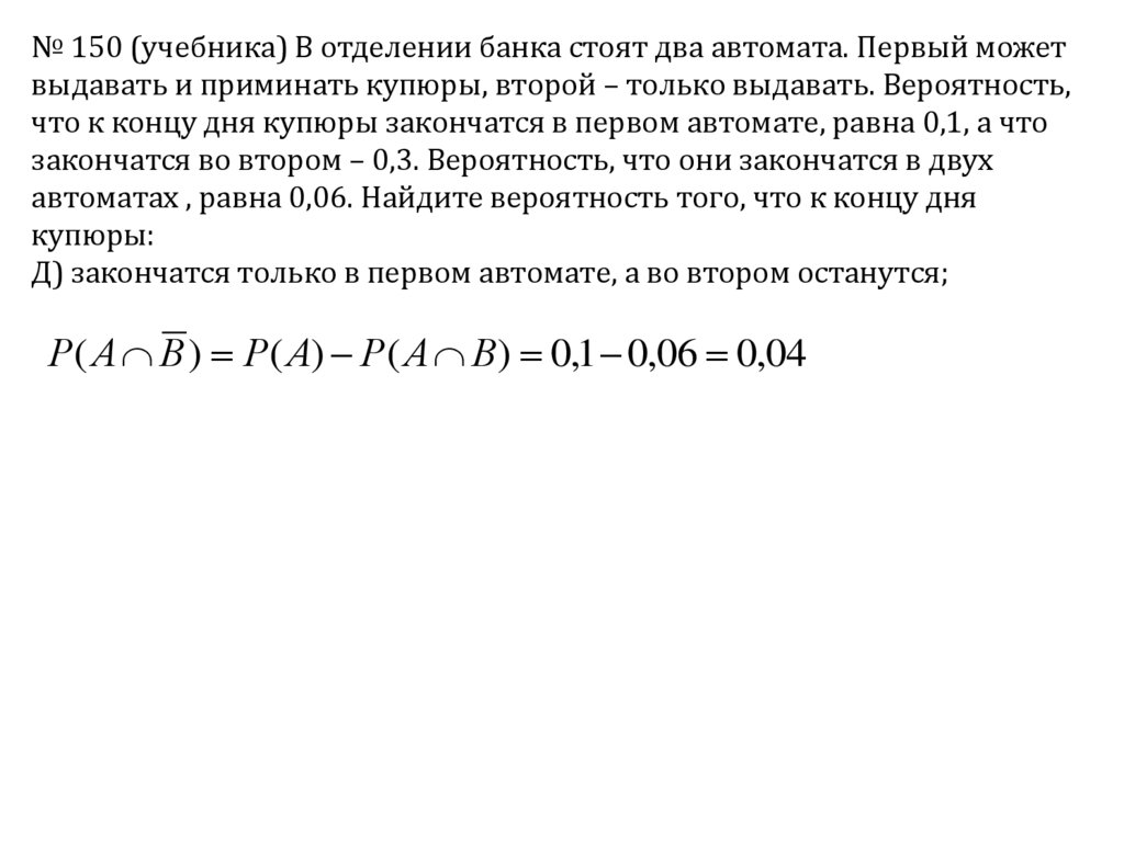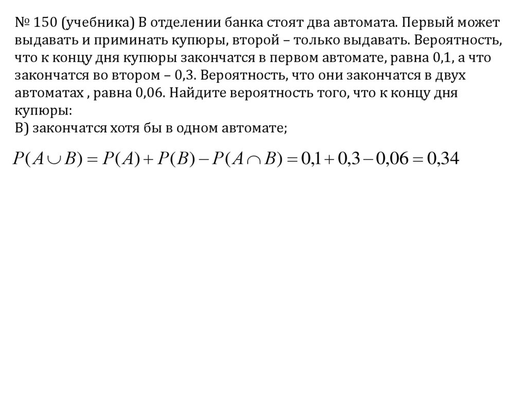№ 150 (учебника) В отделении банка стоят два автомата. Первый можетвыдавать и приминать купюры, второй – только выдавать. Вероятность,