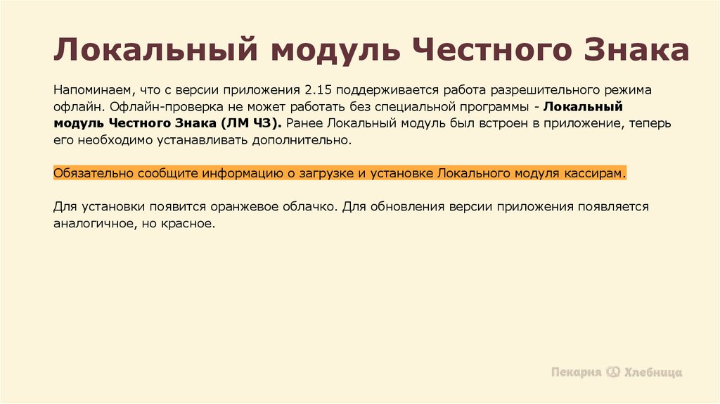 Обязательно сообщите информацию о загрузке и установке Локального модуля кассирам.