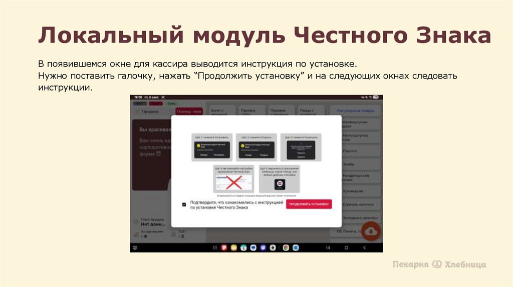 Локальный модуль Честного ЗнакаВ появившемся окне для кассира выводится инструкция по установке.