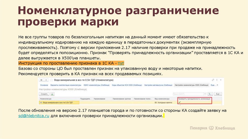 планшетах. Для этого необходимо создать заявку на 1c@hlebnitca.ru.