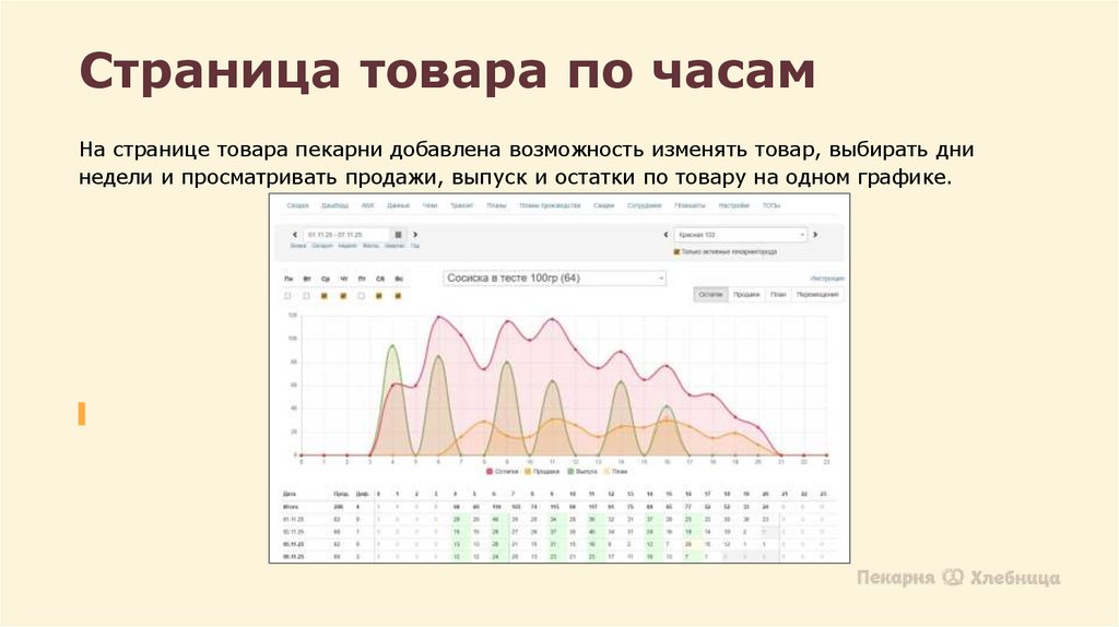 недели и просматривать продажи, выпуск и остатки по товару на одном графике.