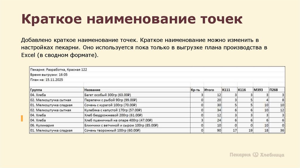 настройках пекарни. Оно используется пока только в выгрузке плана производства в