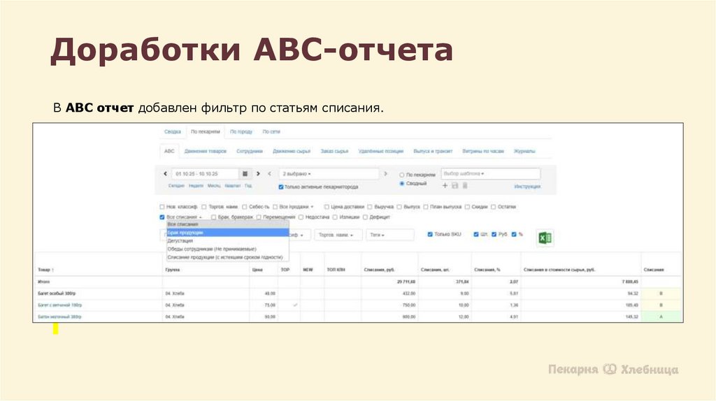 Доработки АВС-отчетаВ АВС отчет добавлен фильтр по статьям списания.