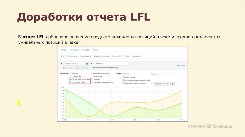 Доработки отчета LFLВ отчет LFL добавлено значение среднего количества позиций в чеке и среднего количества