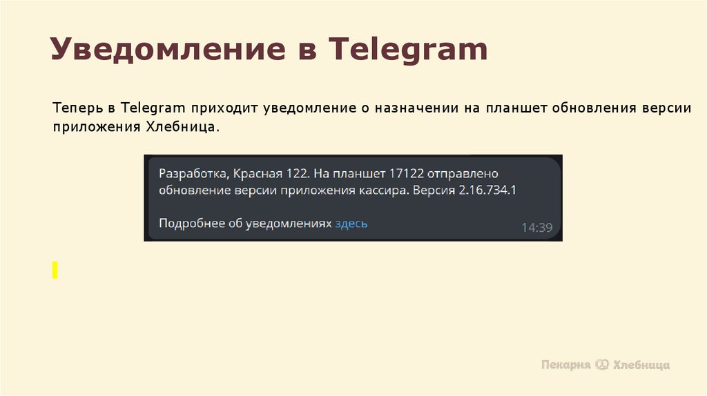 Уведомление в TelegramТеперь в Telegram приходит уведомление о назначении на планшет обновления версии