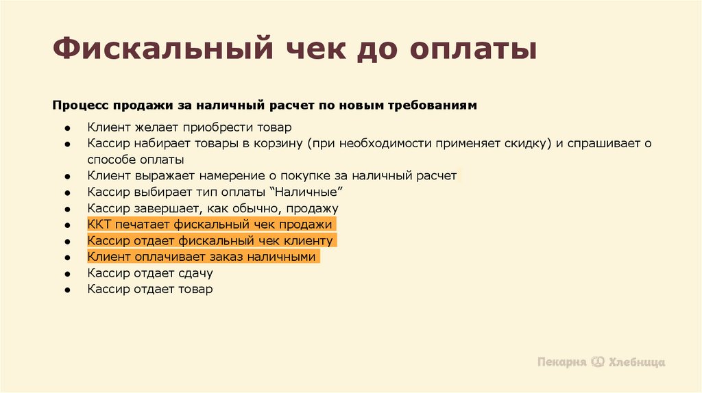 Фискальный чек до оплатыПроцесс продажи за наличный расчет по новым требованиям