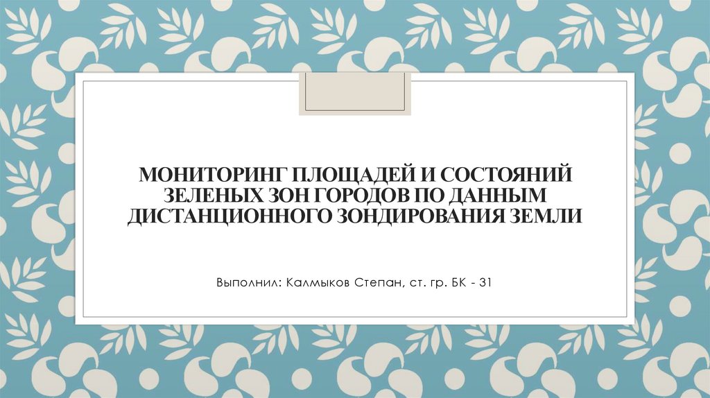 МОНИТОРИНГ ПЛОЩАДЕЙ И СОСТОЯНИЙЗЕЛЕНЫХ ЗОН ГОРОДОВ ПО ДАННЫМ