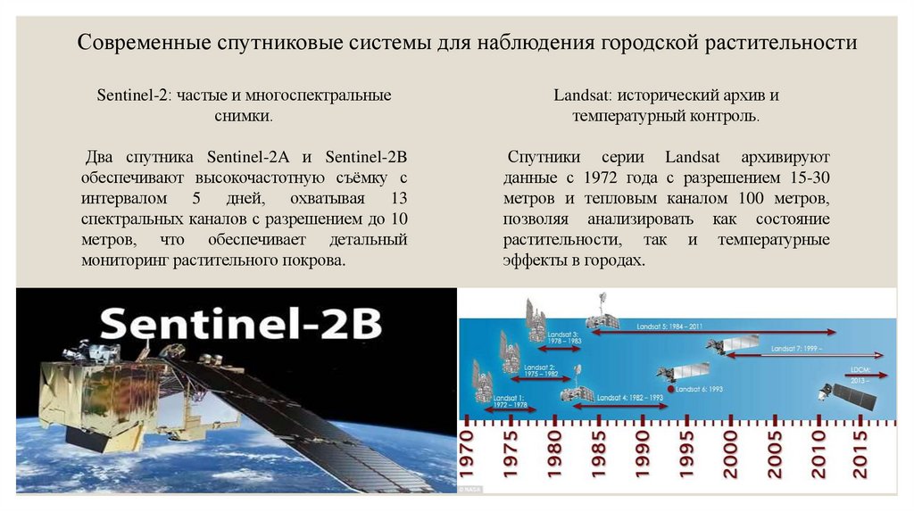 Современные спутниковые системы для наблюдения городской растительностиSentinel-2: частые и многоспектральные