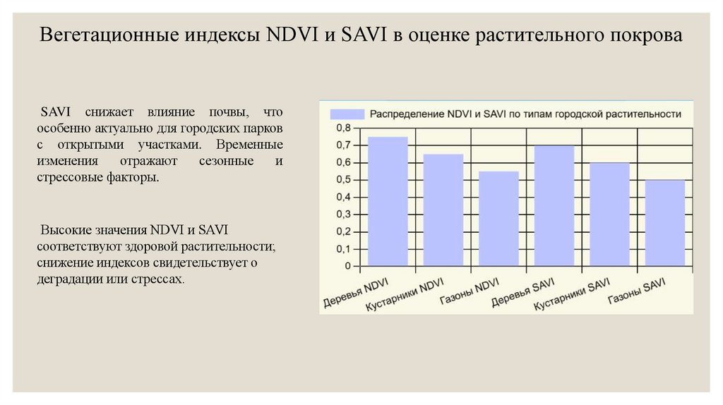 Вегетационные индексы NDVI и SAVI в оценке растительного покроваSAVI снижает влияние почвы, что