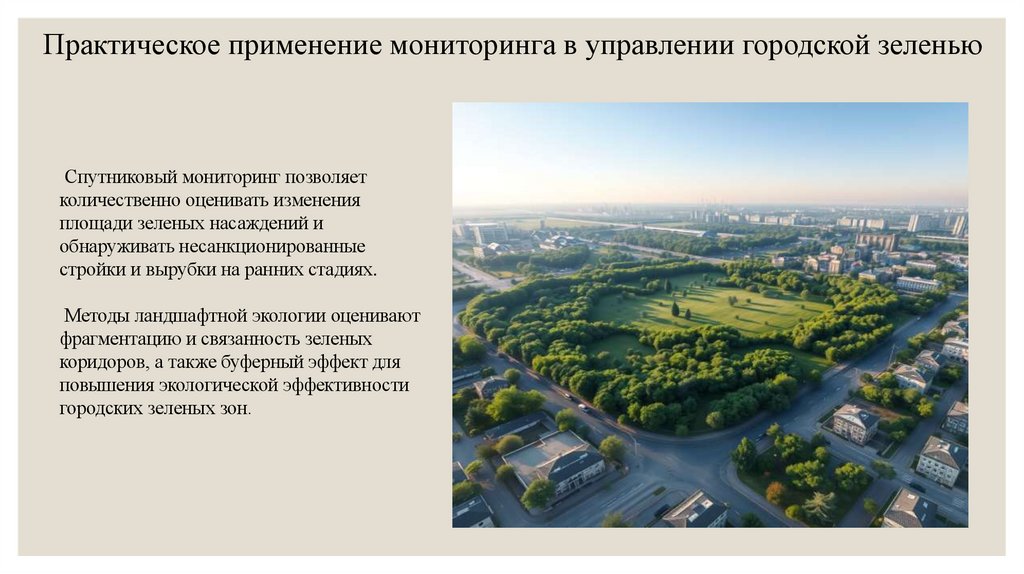 Практическое применение мониторинга в управлении городской зеленьюСпутниковый мониторинг позволяет