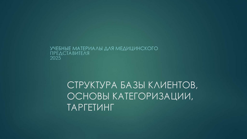 1. СТРУКТУРА БАЗЫ КЛИЕНТОВ, ОСНОВЫ КАТЕГОРИЗАЦИИ, ТАРГЕТИНГ