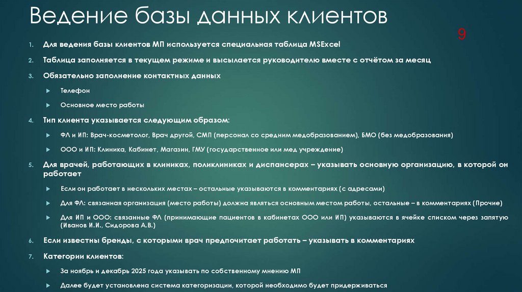 1.Для ведения базы клиентов МП используется специальная таблица MSExcel