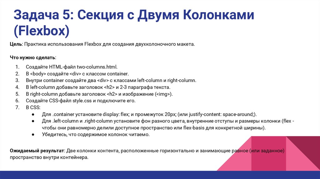 Задача 5: Секция с Двумя Колонками(Flexbox)