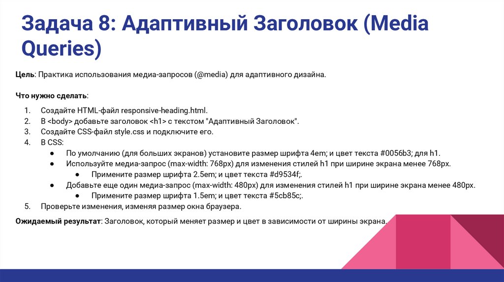 Задача 8: Адаптивный Заголовок (MediaQueries)