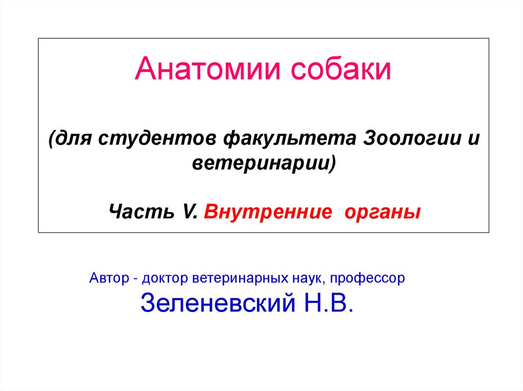 1. Анатомии собаки (для студентов факультета Зоологии и ветеринарии) Часть V. Внутренние органы