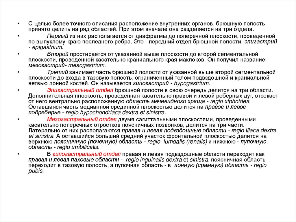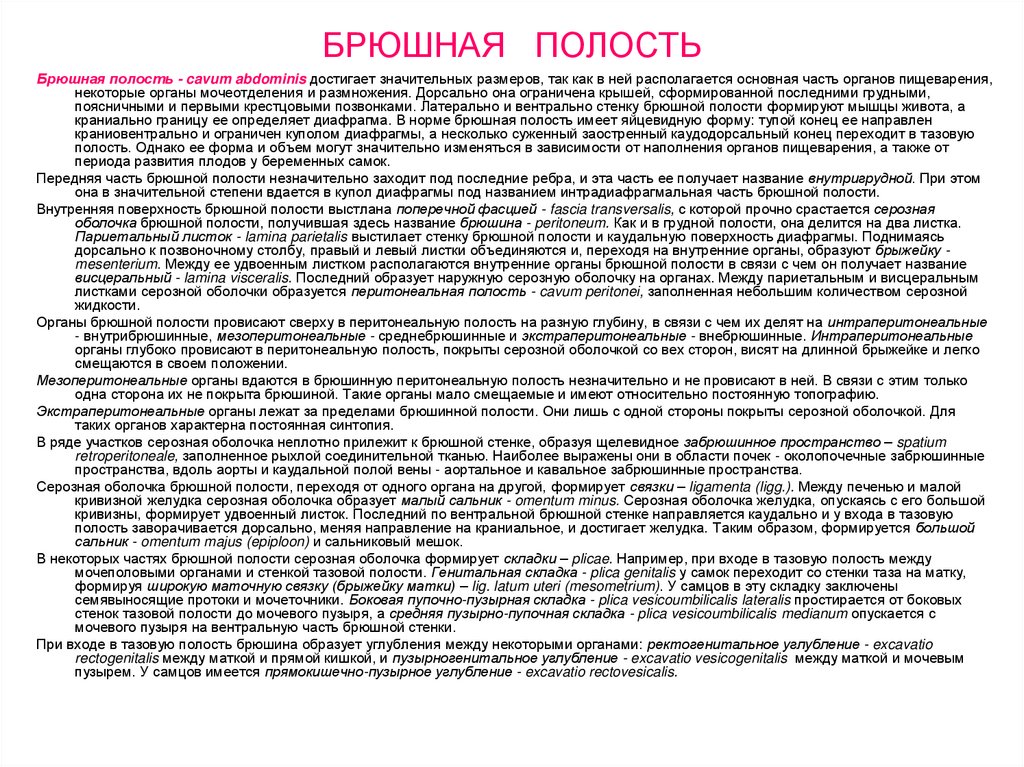 Внутренние органы располагаются определенным образом и в определеннойпоследовательности в естественных полостях тела. Из них грудная и брюшная выстланы