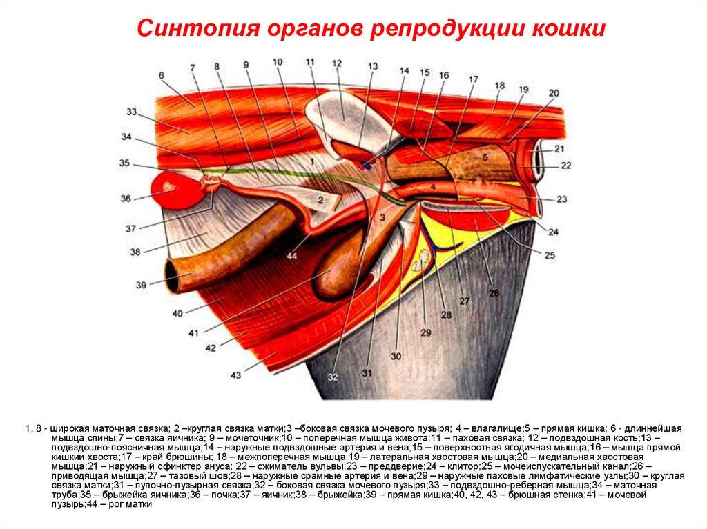 У кота кроме предстательной имеется и луковичная (бульбоуретральная) железа – gl. bulbourethralis. Она парная, покрыта луковичнокавернозной мышцей, а сама располагается на седалищно-кавернозной мышце. У корня полового члена железа открывается многочисленными