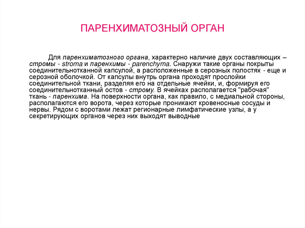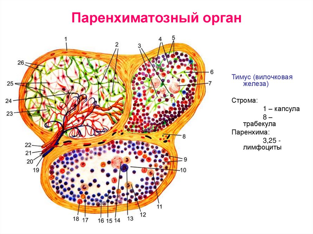 Поверхность железы покрыта соединительнотканной капсулой, содержащей гладкомышечные волокна. Капсула проникает внутрь органа, разделяя его