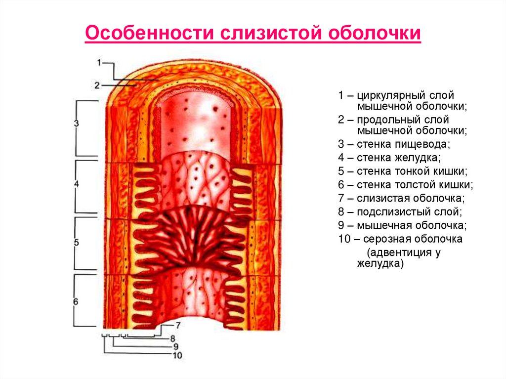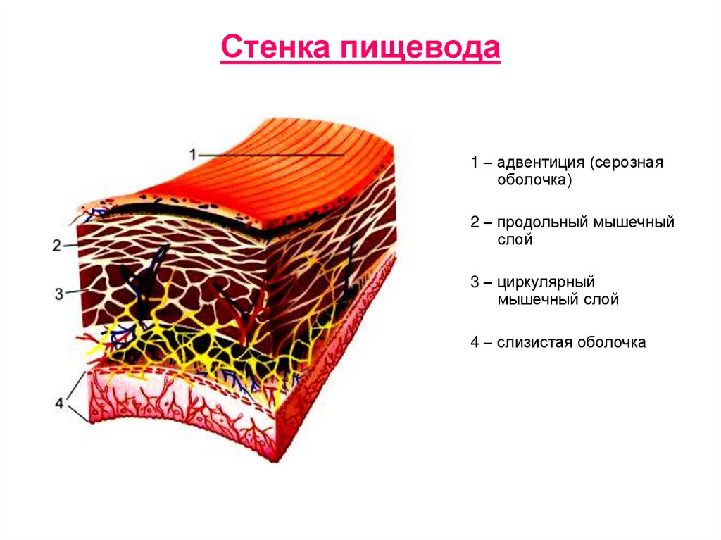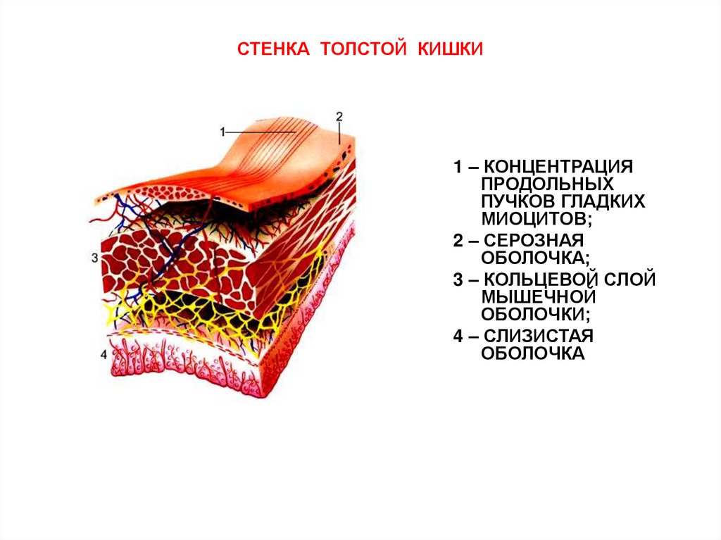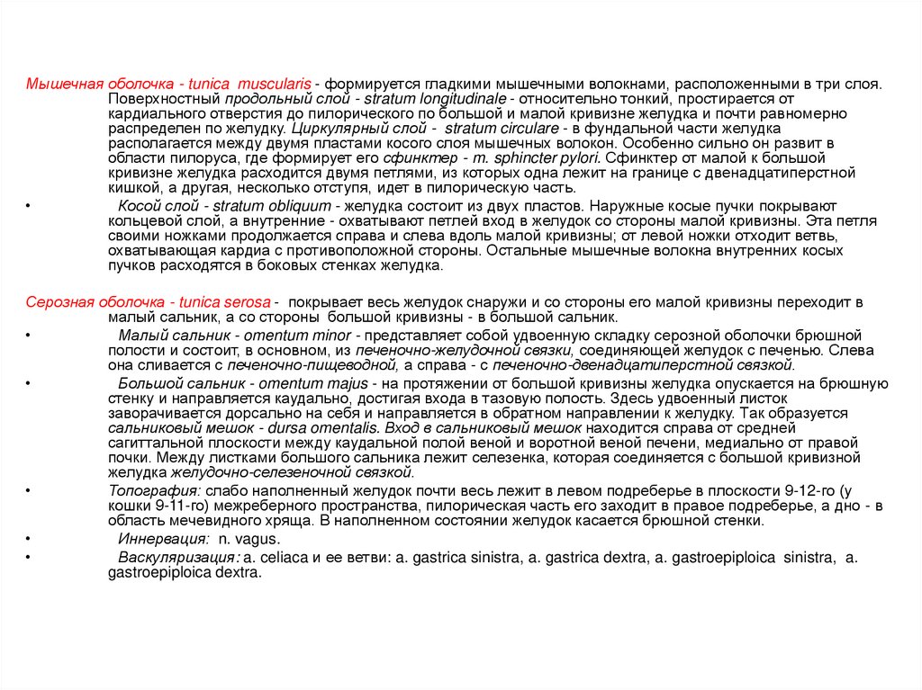 складки. Мышечная оболочка представлена двумя слоями гладких миоцитов: продольным и циркулярным. Серозная оболочка является продолжением