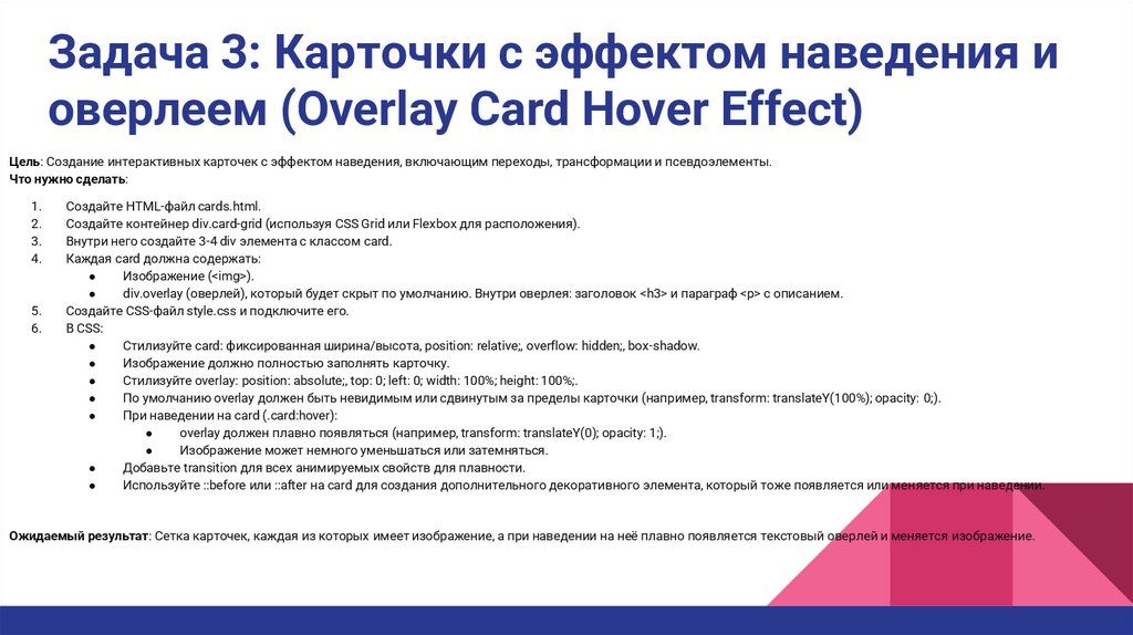 Задача 3: Карточки с эффектом наведения иоверлеем (Overlay Card Hover Effect)