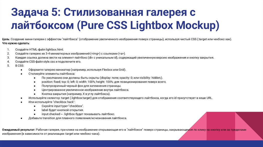 Задача 5: Стилизованная галерея слайтбоксом (Pure CSS Lightbox Mockup)
