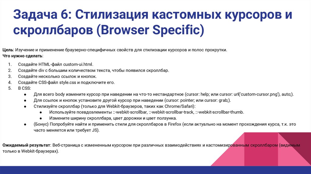 Задача 6: Стилизация кастомных курсоров искроллбаров (Browser Specific)