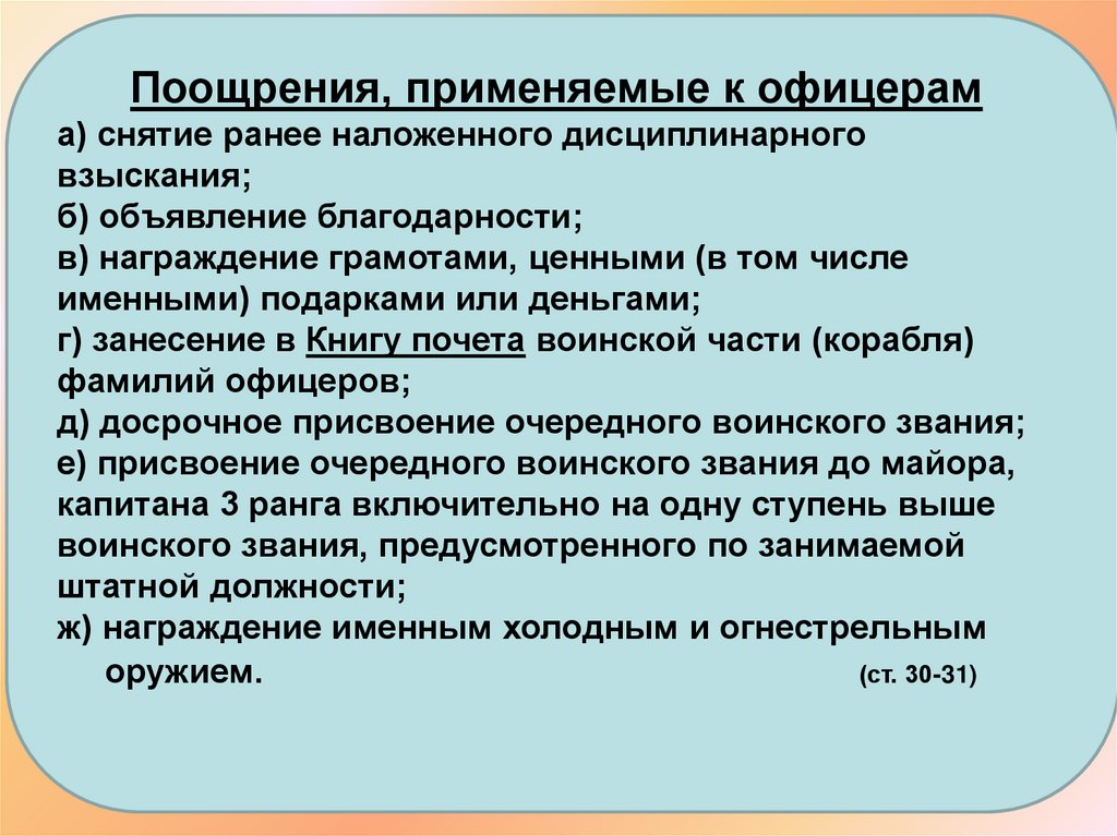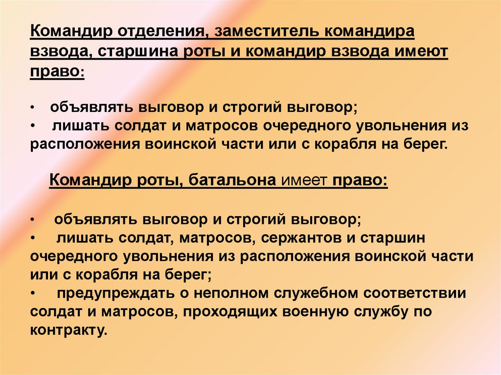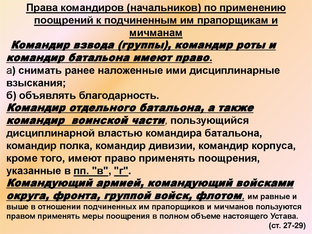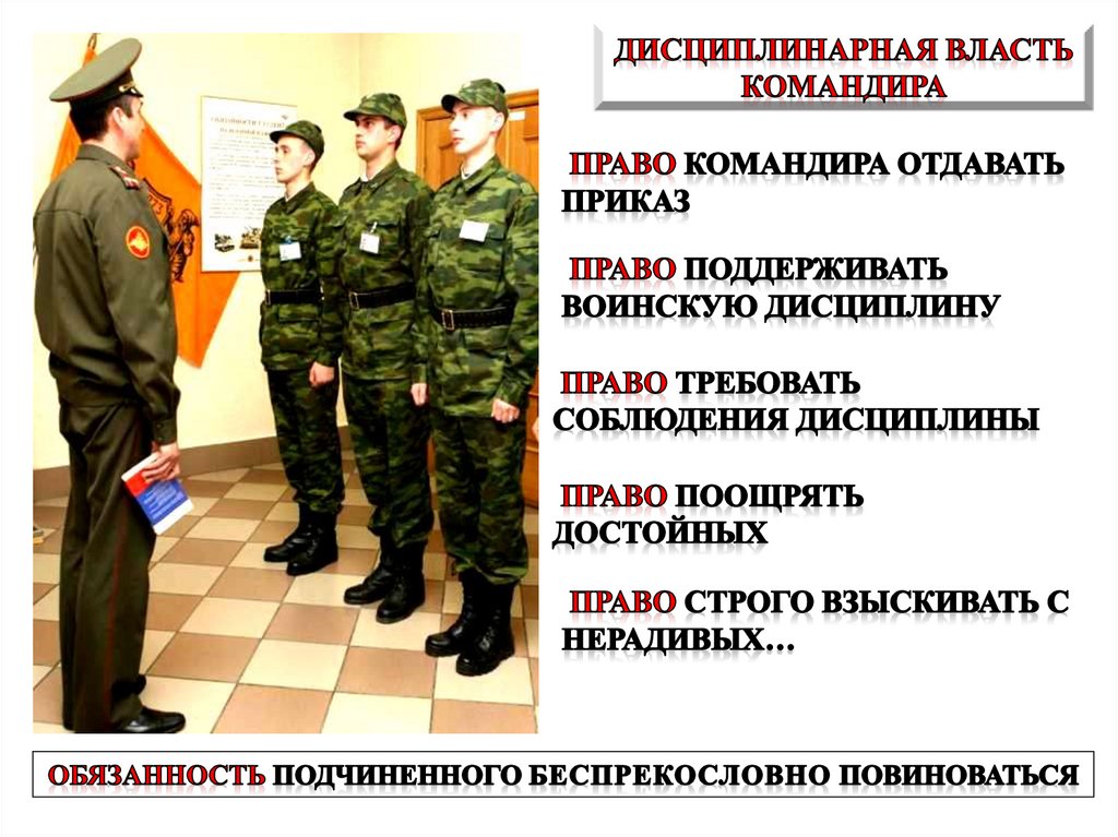 Конституцию РФ, законы РФ и требования общевоинских уставов;