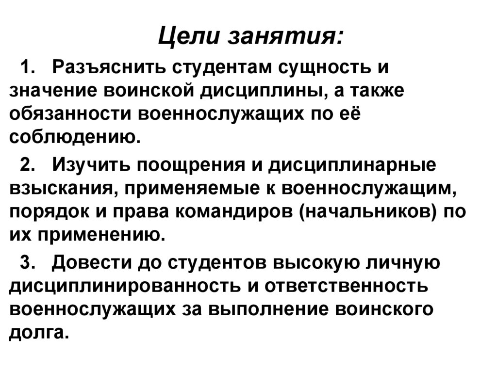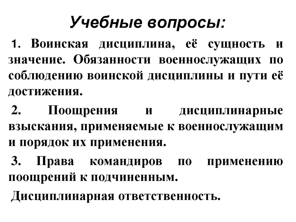 Учебные вопросы:1. Воинская дисциплина, её сущность и