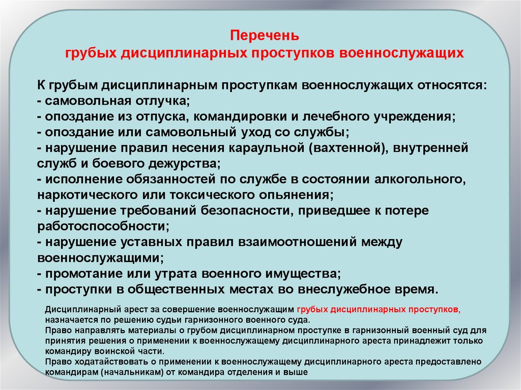 Дисциплинарный арест за совершение военнослужащим грубых дисциплинарных проступков,