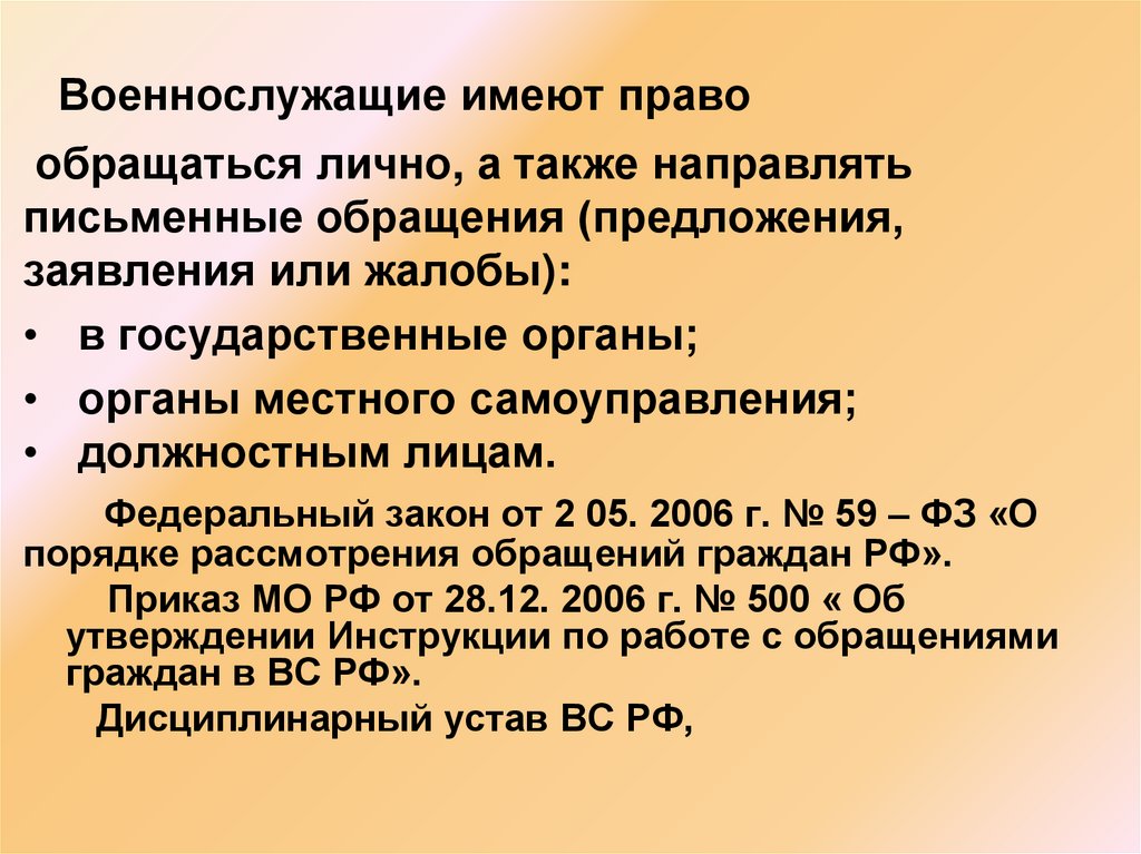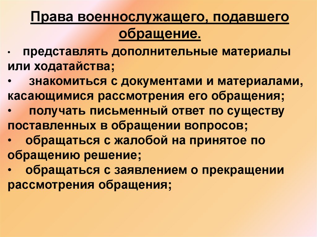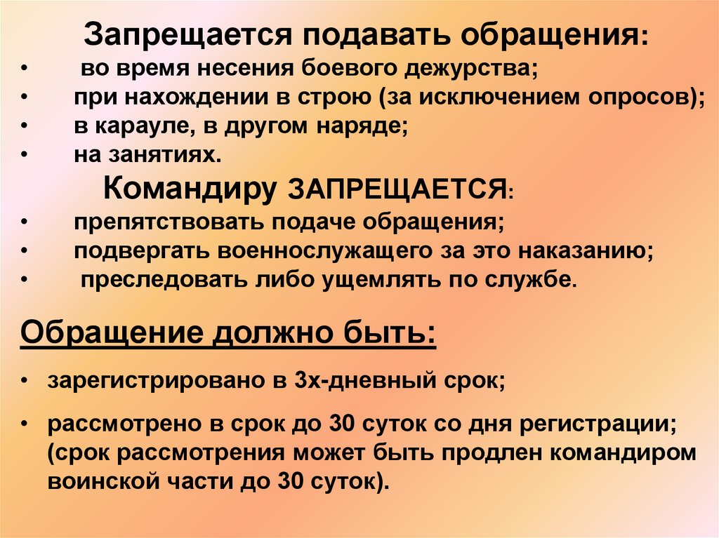 Запрещается подавать обращения:во время несения боевого дежурства;