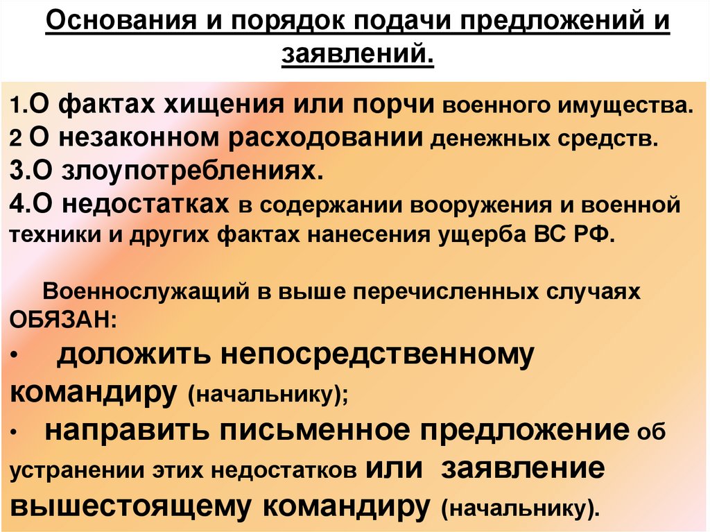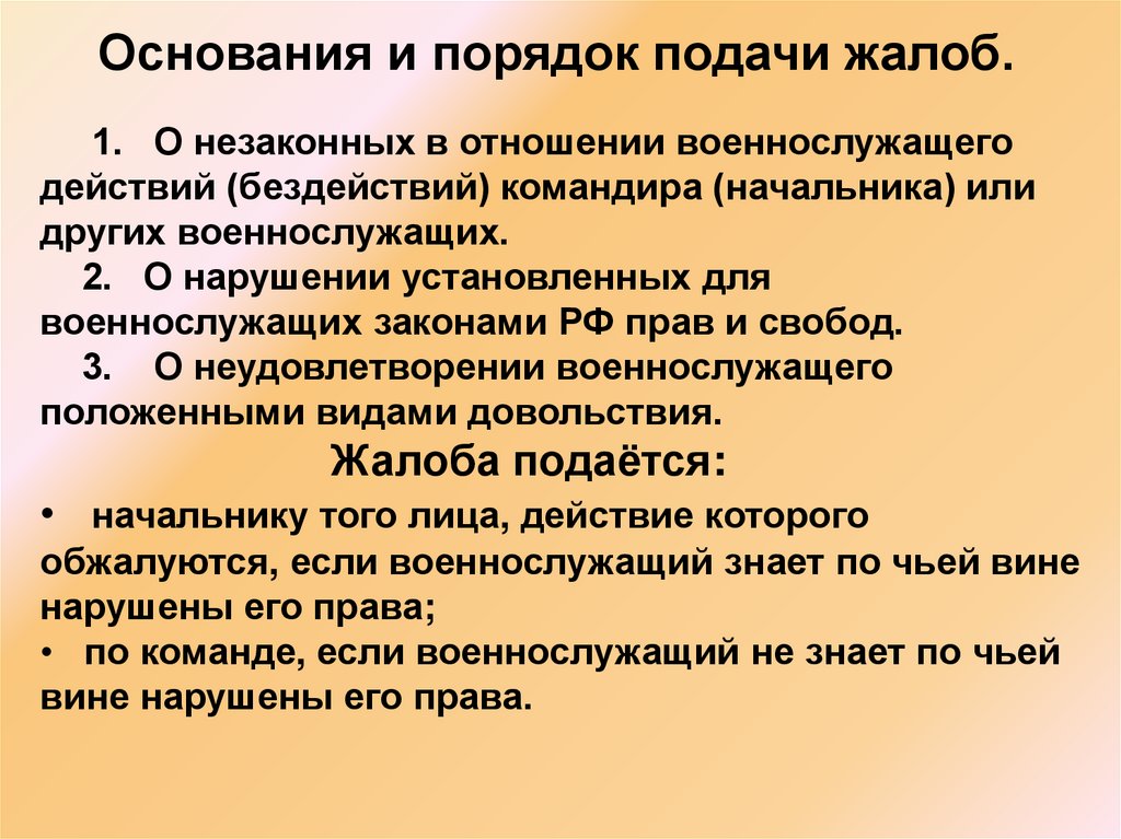 Основания и порядок подачи жалоб.1. О незаконных в отношении военнослужащего