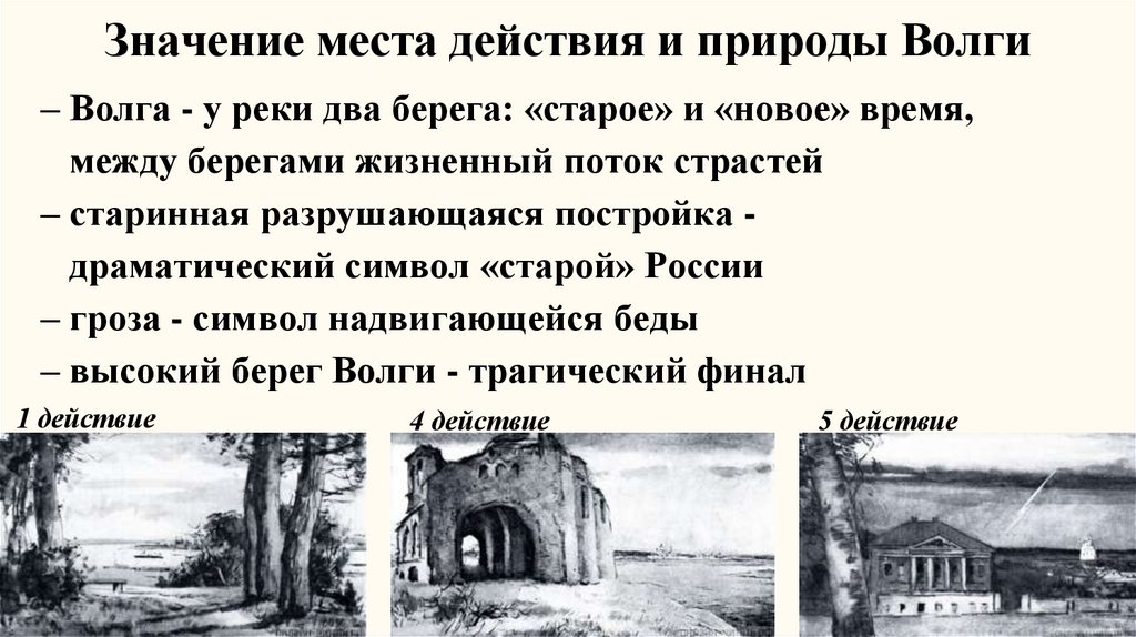 Значение места действия и природы Волги– Волга - у реки два берега: «старое» и «новое» время,